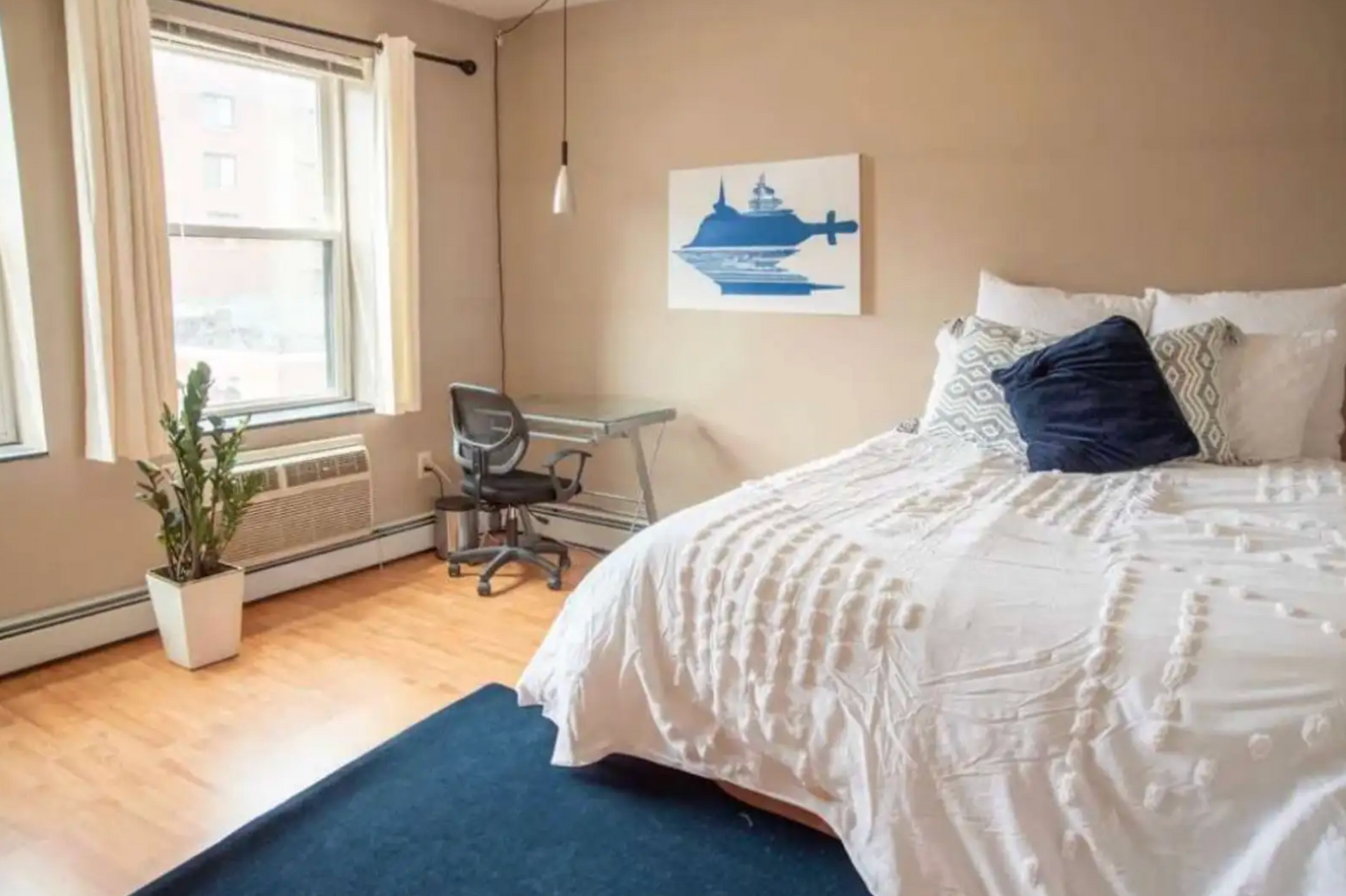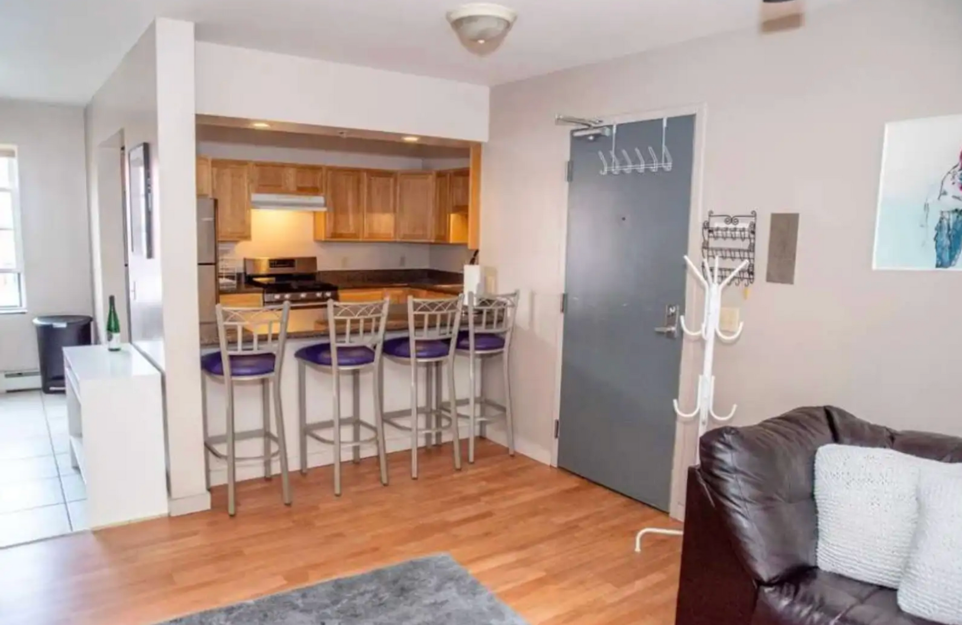✅ Fully furnished: bedroom comes with a desk, desk chair, dresser, and full size bed (with memory foam mattress) + living room is furnished with a sofa, large smart TV, coffee table, and bar stools